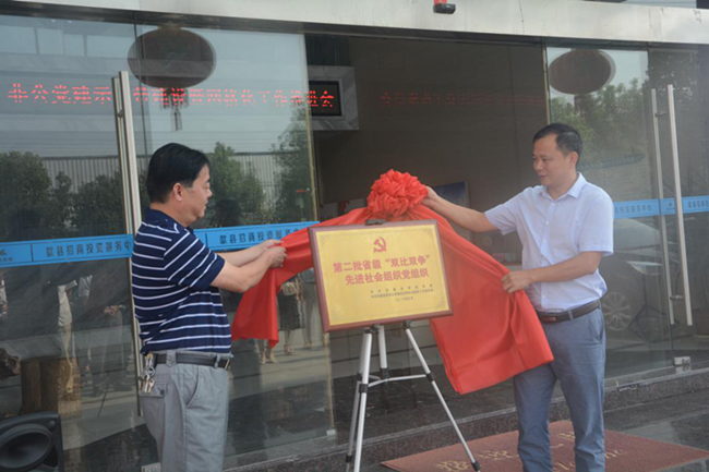 會議首先為金信財稅黨支部獲得的安徽省第二批“雙比雙爭”先進社會組織黨組織榮譽進行揭牌。縣委組織部副部長、非公工委書記吳堅、徽城鎮黨委書記張贈共同為該獎牌揭開大紅的綢布并分別作重要講話,這也是我縣黨組織獲得的第三塊省級黨建榮譽獎牌。