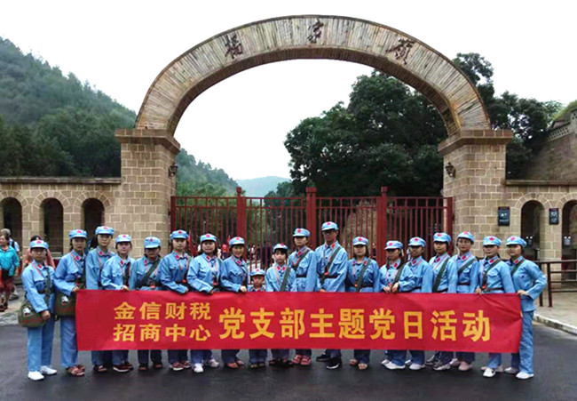 2019年8月20至24日,金信財稅與招商中心黨支部聯合開展8月份“不忘初心,牢記使命”主題黨日活動,組織黨員及部分員工前往紅色教育基地——延安楊家嶺,緬懷革命先烈,開展拓展訓練。
