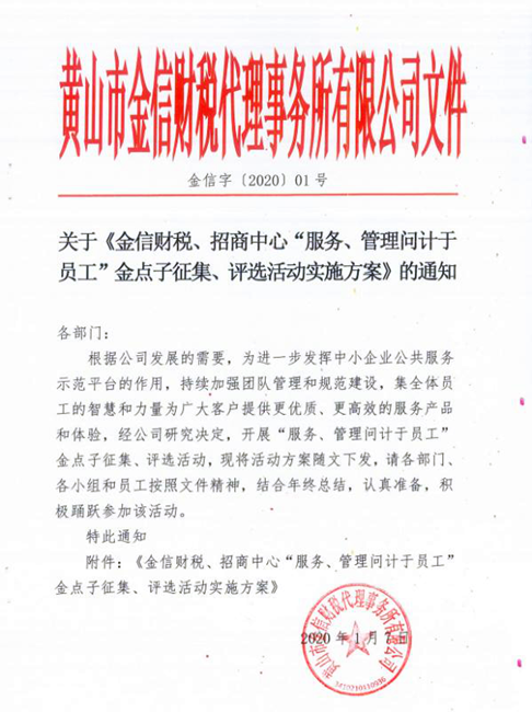 為進(jìn)一步發(fā)揮“國家中小企業(yè)公共服務(wù)示范平臺(tái)”的作用,持續(xù)加強(qiáng)團(tuán)隊(duì)管理和規(guī)范建設(shè),集全體員工的智慧和力量為廣大客戶提供更優(yōu)質(zhì)、更高效的服務(wù)產(chǎn)品和體驗(yàn),招商中心、金信財(cái)稅決定開展“服務(wù)、管理問計(jì)于員工”金點(diǎn)子征集、評(píng)選活動(dòng)。
