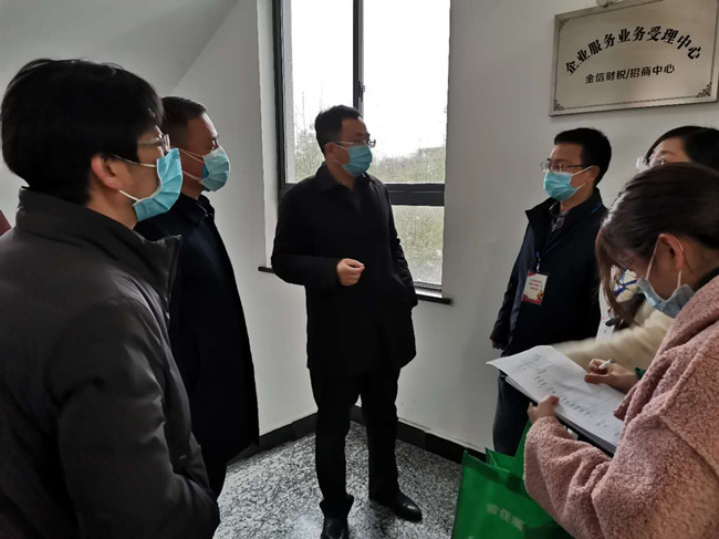 2月15日,縣委副書記、開發區黨工委書記蔣曉放一行來歙縣招商投資服務中心檢查指導疫情防控和復工情況,縣人社局局長張健民、富堨鎮黨委書記曹雄威、鎮長吳劍飛等參與檢查,中心主任胡海鋒全程陪同。
