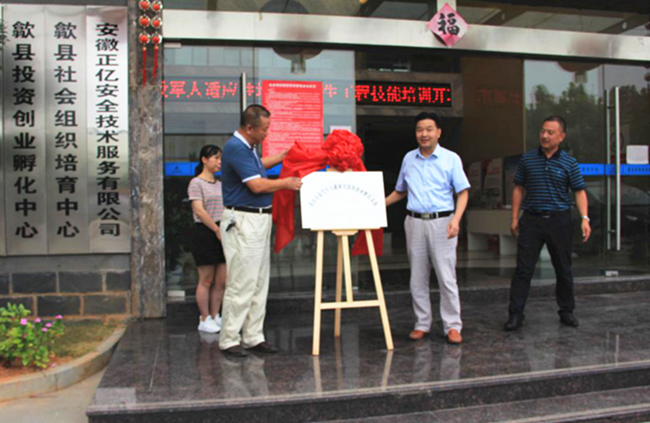 2020年9月10日,“黃山市退役軍人就業(yè)培訓(xùn)與創(chuàng)業(yè)孵化基地”揭牌儀式在歙縣招商投資服務(wù)中心大樓前隆重舉行。儀式由歙縣退役軍人事務(wù)局副局長潘煉主持,歙縣退役軍人事務(wù)局局長金自立作重要講話,黃山市退役軍人事務(wù)局副局長朱樂華出席儀式,并與金自立局長一起為基地揭牌。安徽香寧眾創(chuàng)科技服務(wù)有限公司、歙縣青創(chuàng)職業(yè)培訓(xùn)學(xué)校、歙縣招商投資服務(wù)中心以及參加當(dāng)日適應(yīng)性培訓(xùn)的60余位退役士兵見證了這一重要時刻。