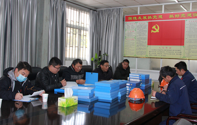 (上圖為檢查小組查看華邦公司安全生產(chǎn)檔案,并向企業(yè)反饋檢查意見(jiàn)。)