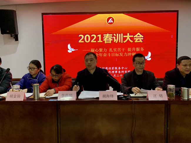 為更好地總結(jié)回顧2020年工作成效,謀劃和布局2021年各項工作,明確目標,細化措施,2月26日,招商中心、金信財稅2021春訓大會在中心一樓眾創(chuàng)空間如期舉行。公司全體員工60人參加會議,中心主任胡海鋒親自主持會議。