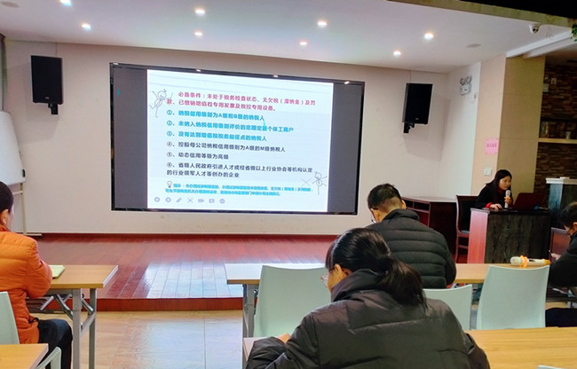 2021年12月4日,由歙縣招商投資服務(wù)中心主辦,黃山市金信財(cái)稅代理事務(wù)所有限公司承辦,金信公司點(diǎn)單財(cái)稅部初級會計(jì)師——謝姝主講的“稅務(wù)簡易注銷網(wǎng)上辦理操作流程”專題培訓(xùn)在一樓眾創(chuàng)空間舉行,園區(qū)企業(yè)負(fù)責(zé)人和中心財(cái)稅服務(wù)人員50余人參與此次分享。